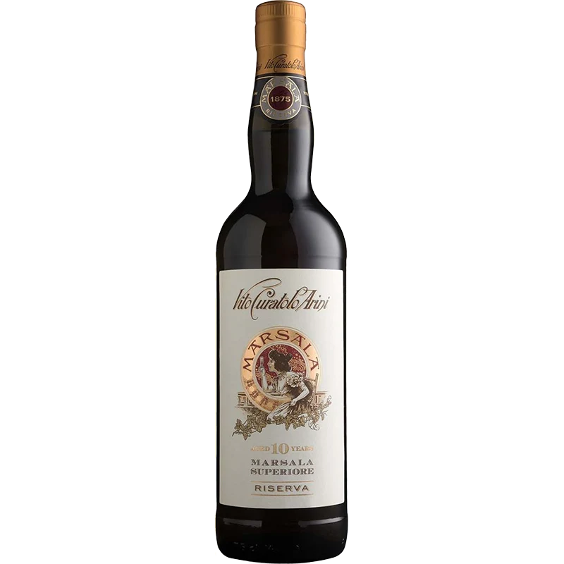 Deze rijke Marsala uit Sicilië wordt gemaakt van Catarratto, Grillo en Inzolia, afkomstig uit zonnige kustwijngaarden rond Marsala. Het historische huis Curatolo Arini – opgericht in 1860 door pionier Vito Curatolo Arini – groeide uit tot hét icoon van versterkte wijnen, geliefd in luxe restaurants wereldwijd. De druiven worden zacht geperst, warm vergist en daarna verrijkt met mistella en mosto cotto voor een perfecte balans. Vervolgens rijpt de wijn minstens tien jaar op diverse eiken vaten, wat zorgt voor enorme diepgang. Het resultaat: een amberkleurige, volle en complexe Marsala met tonen van amandel, dadel, rozijn en vanille. Droog, maar met een subtiel zoetje. Fantastisch bij gerijpte pecorino, geserveerd op 15 °C.